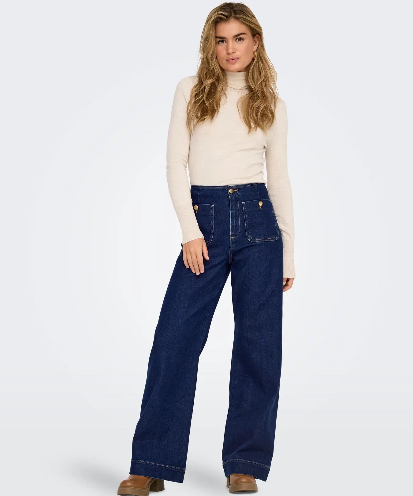 Calça Onlmadeline Cintura alta Wide Leg Fit Jeans