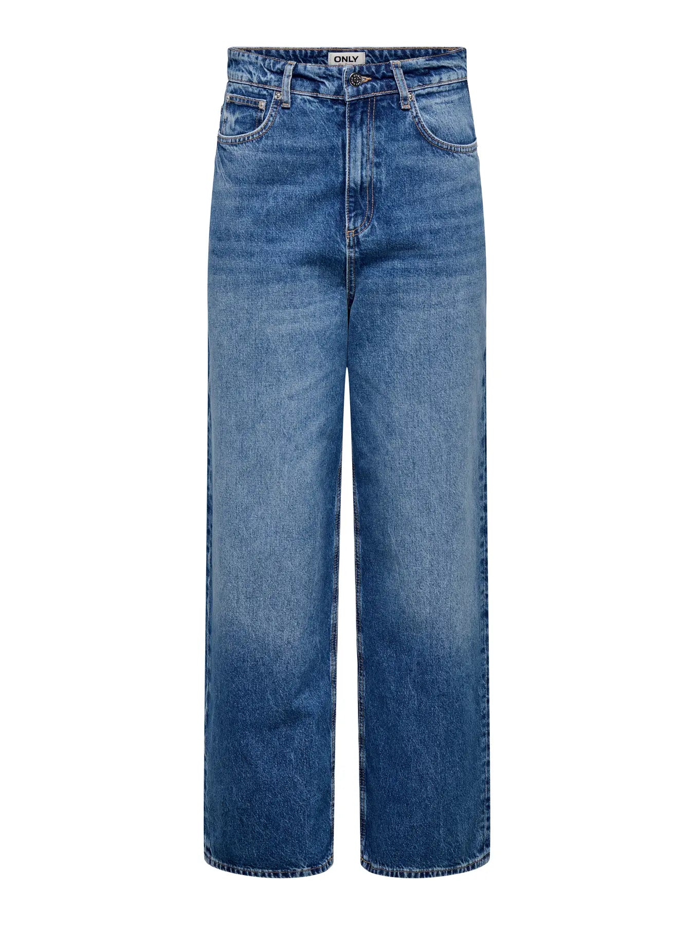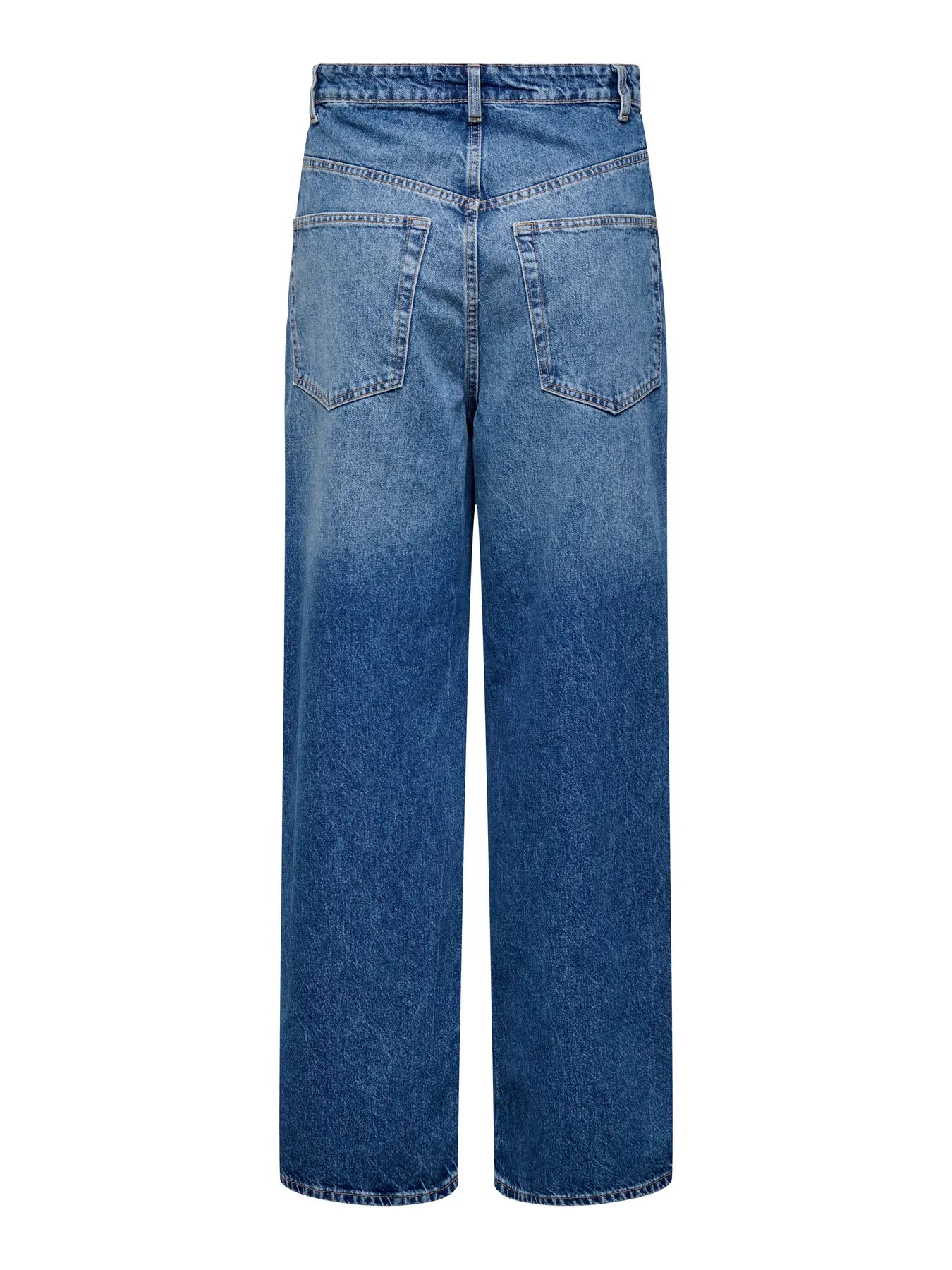 - Caimento: Esta calça jeans larga é folgada e muito confortável