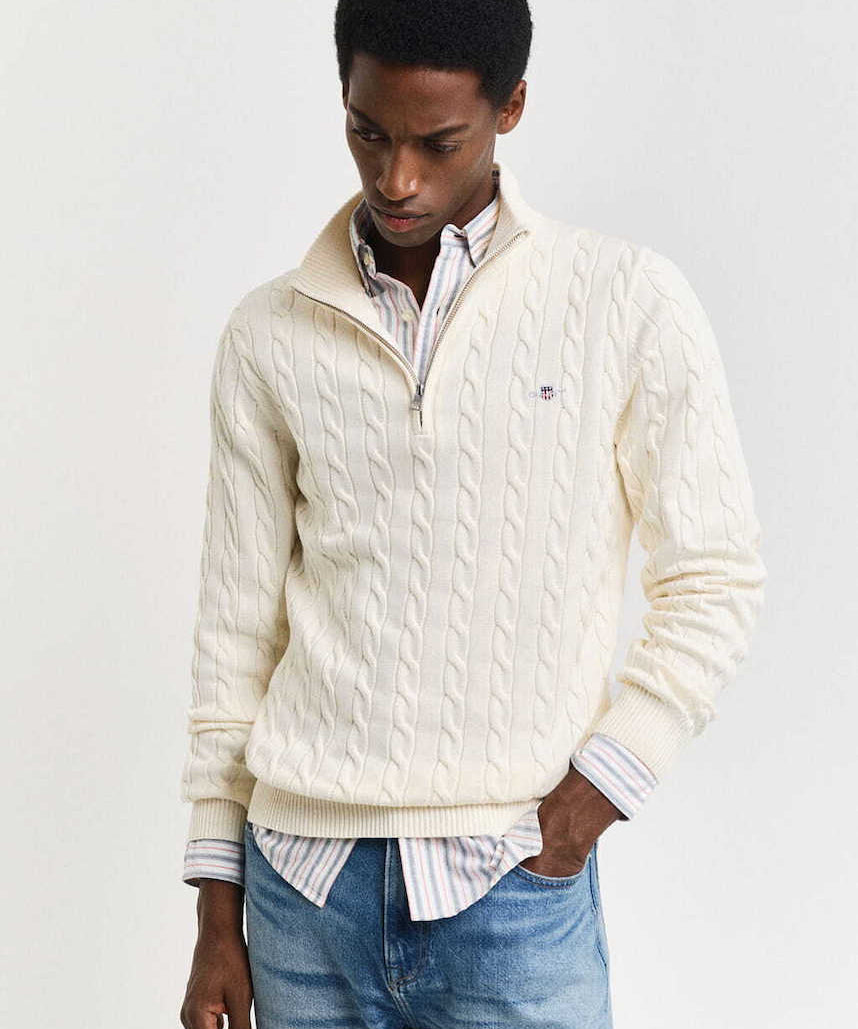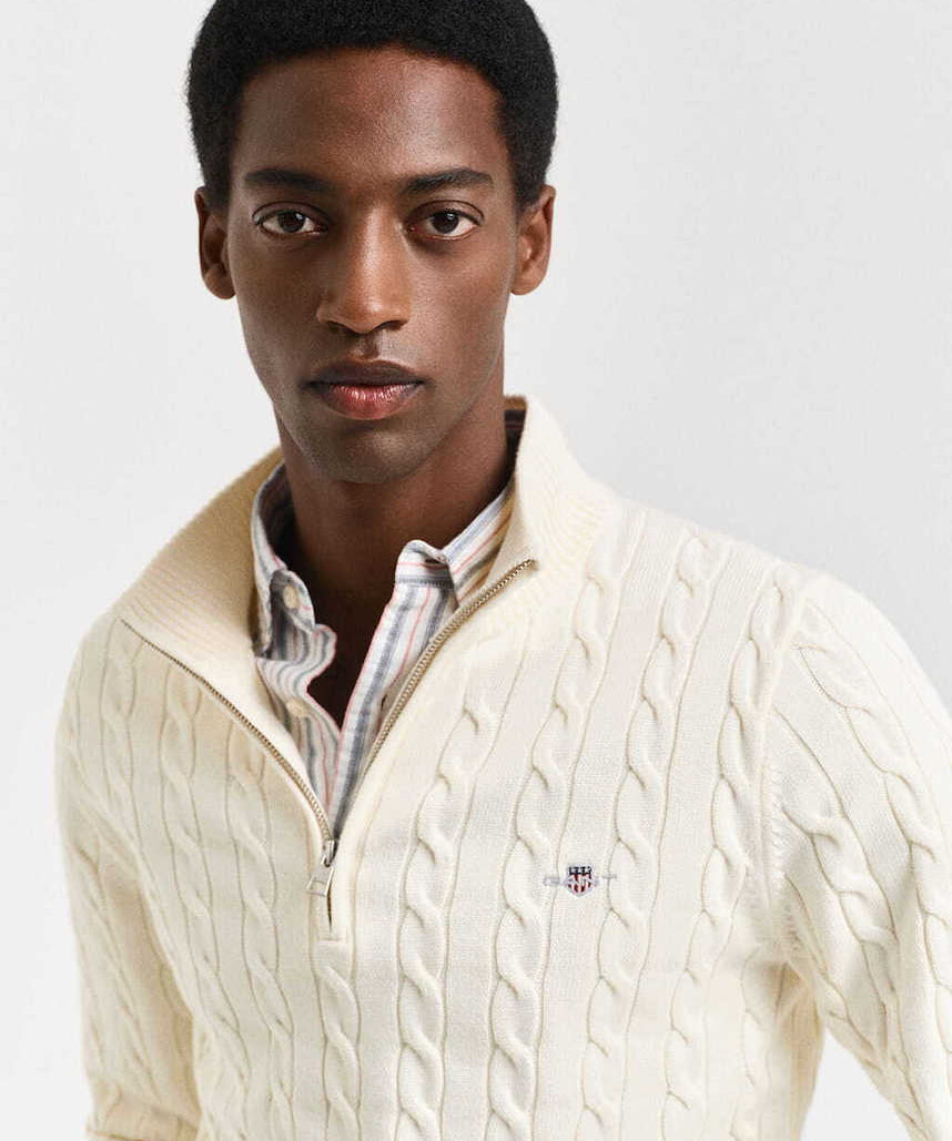 Camisola Gant de malha entrançada de algodão com meio fecho de correr