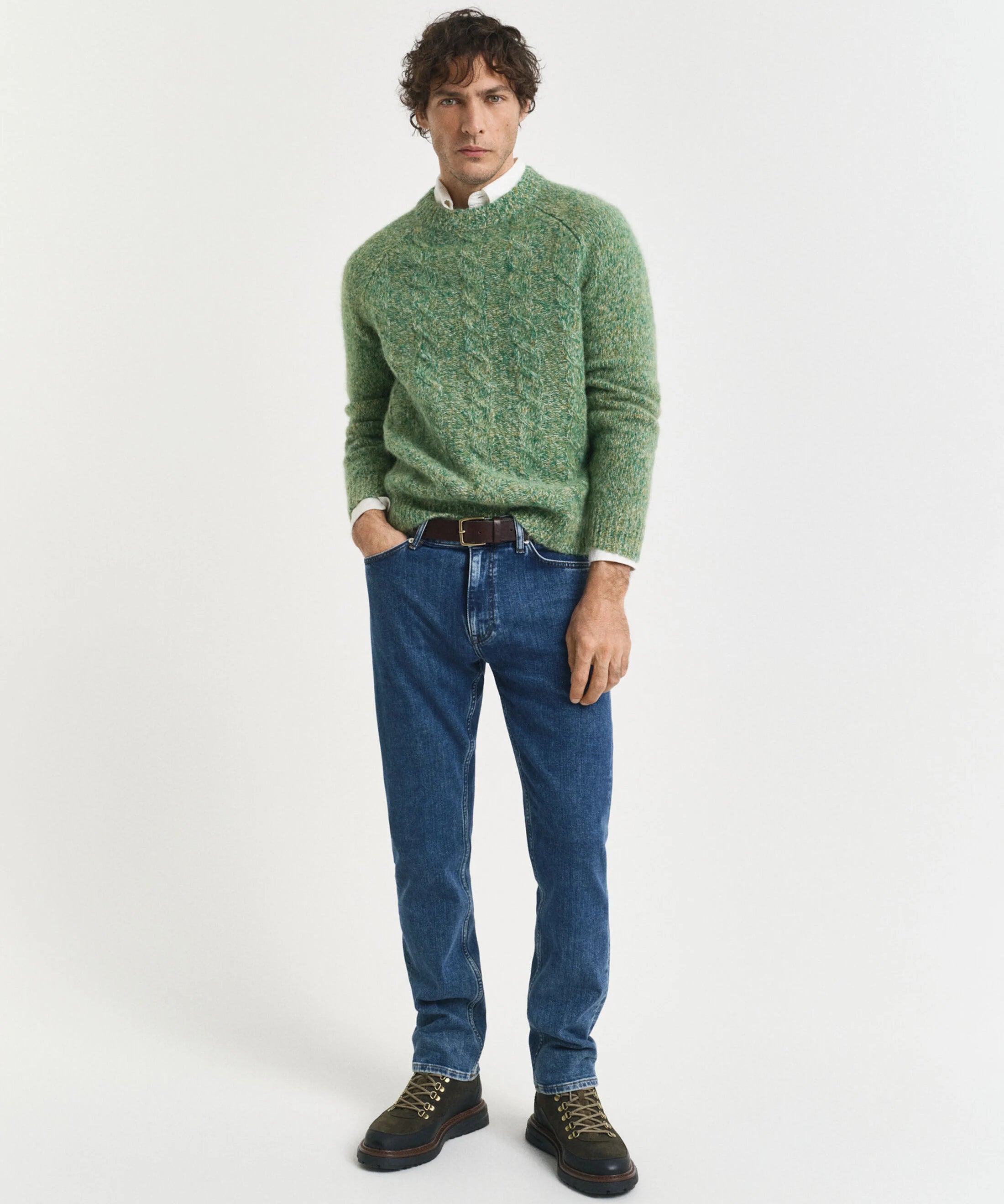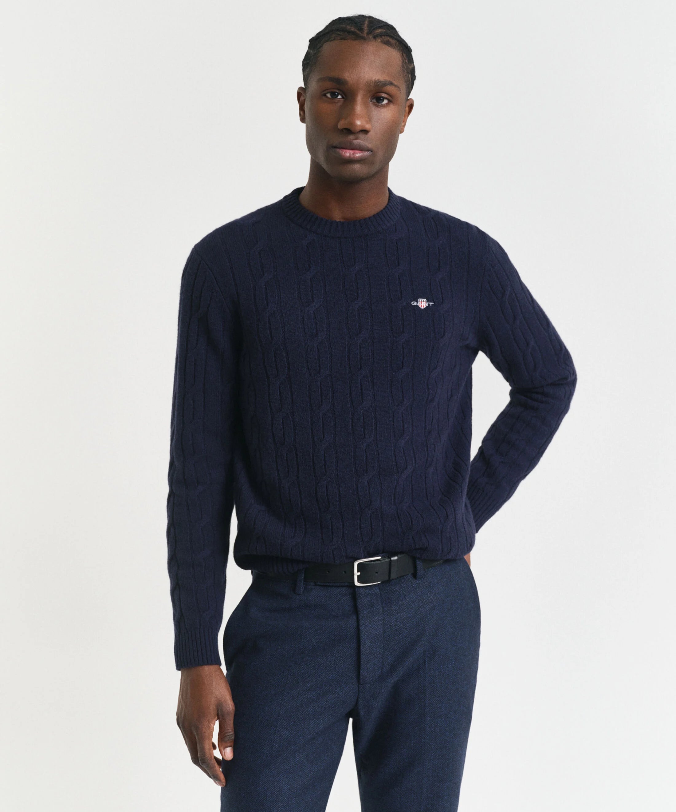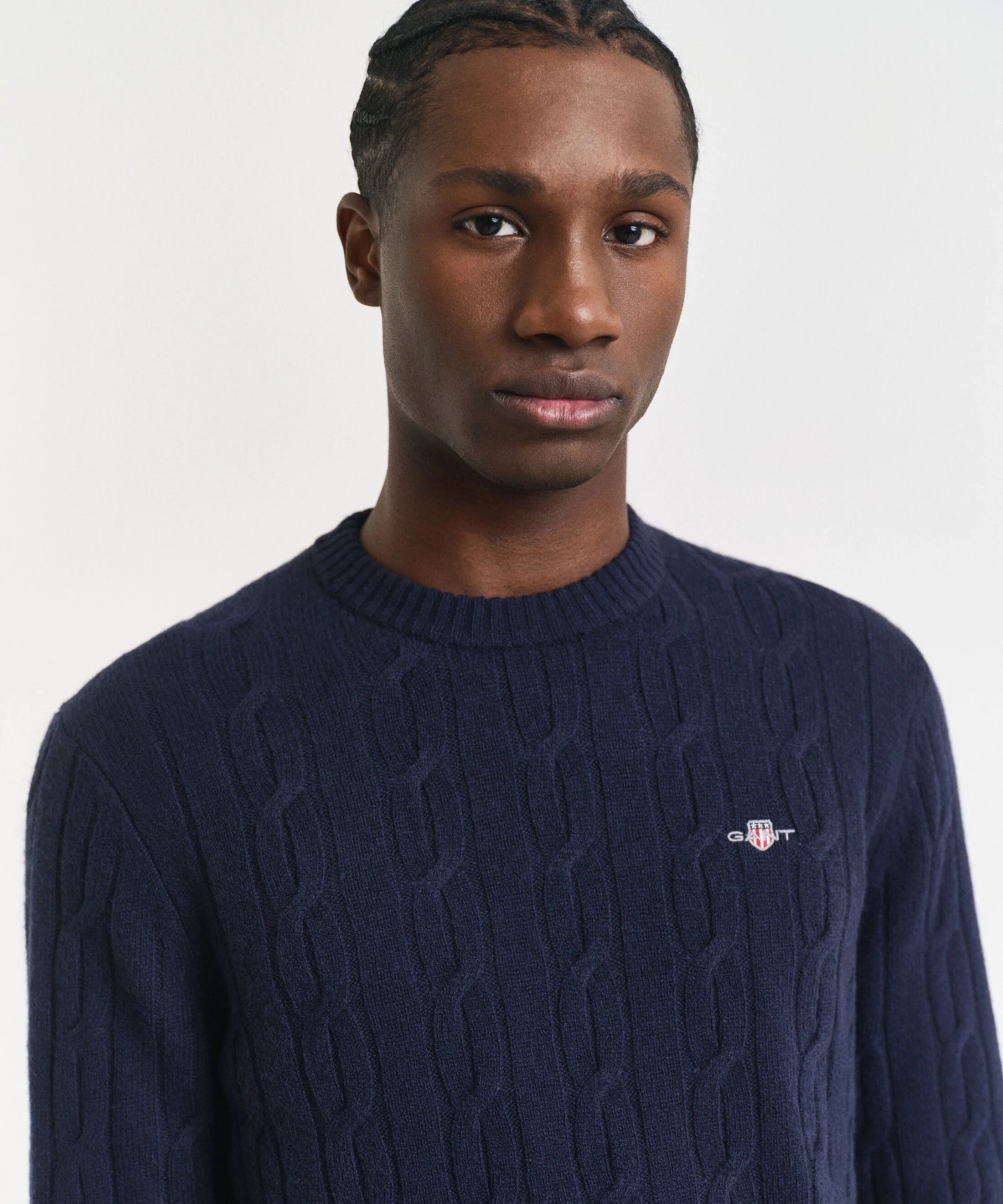 Camisola Gant em malha entrançada de algodão com decote redondo