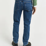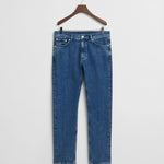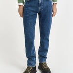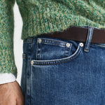 Concebidas com uma lavagem em tom índigo ténue, estas calças de ganga são a adição perfeita a qualquer guarda-roupa sazonal. Com um corte normal, têm cintura média e são ligeiramente afuniladas abaixo do joelho. Feitas com um design clássico com 5 bolsos e braguilha com fecho de correr, estas calças de ganga possuem rebites e botões com haste da marca e um remendo em pele com logótipo na parte de trás da cintura.
