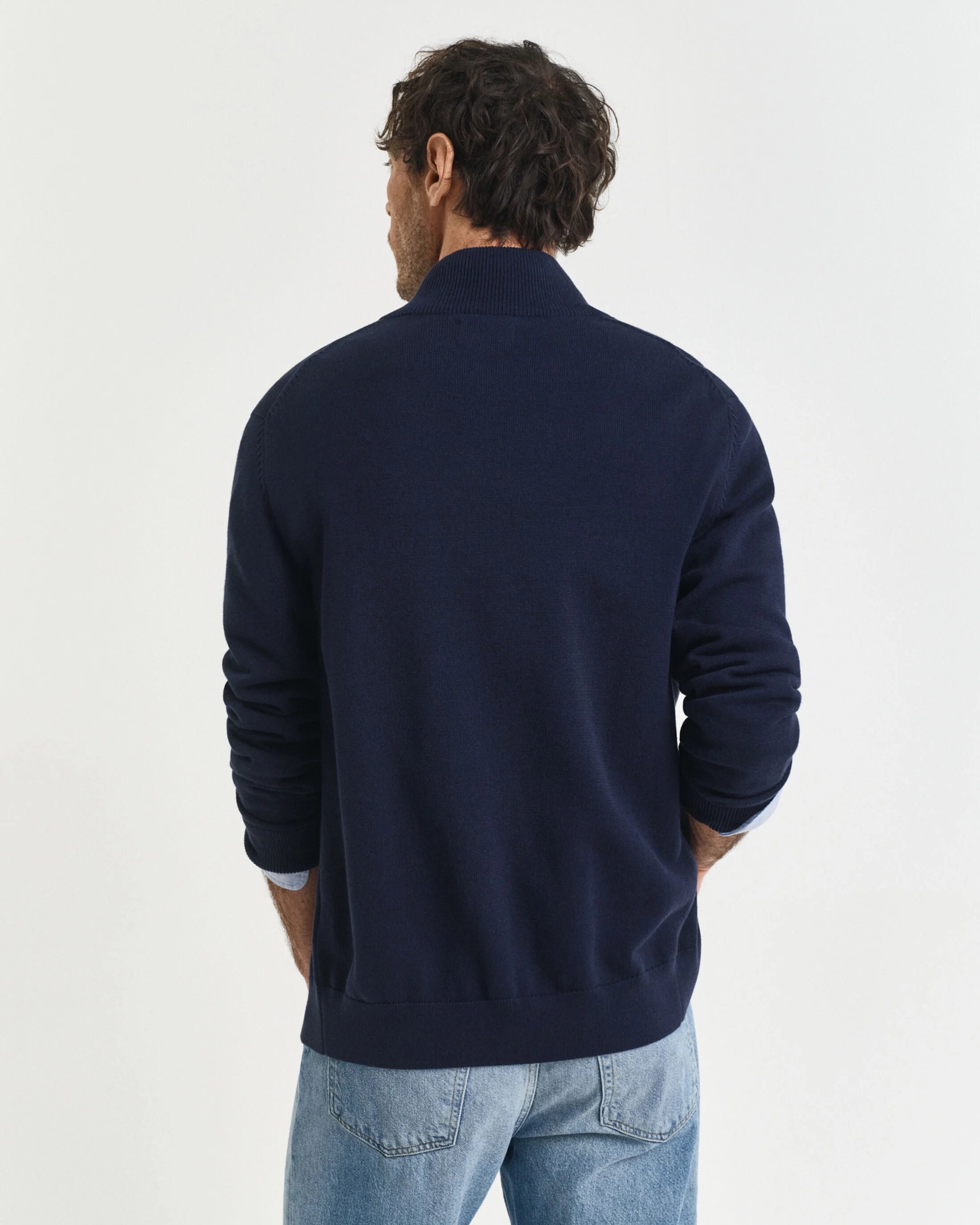 Feito em algodão de gramagem média e com um corte normal, este casaco de malha com fecho de correr apresenta um grafismo com emblema GANT bordado no peito.