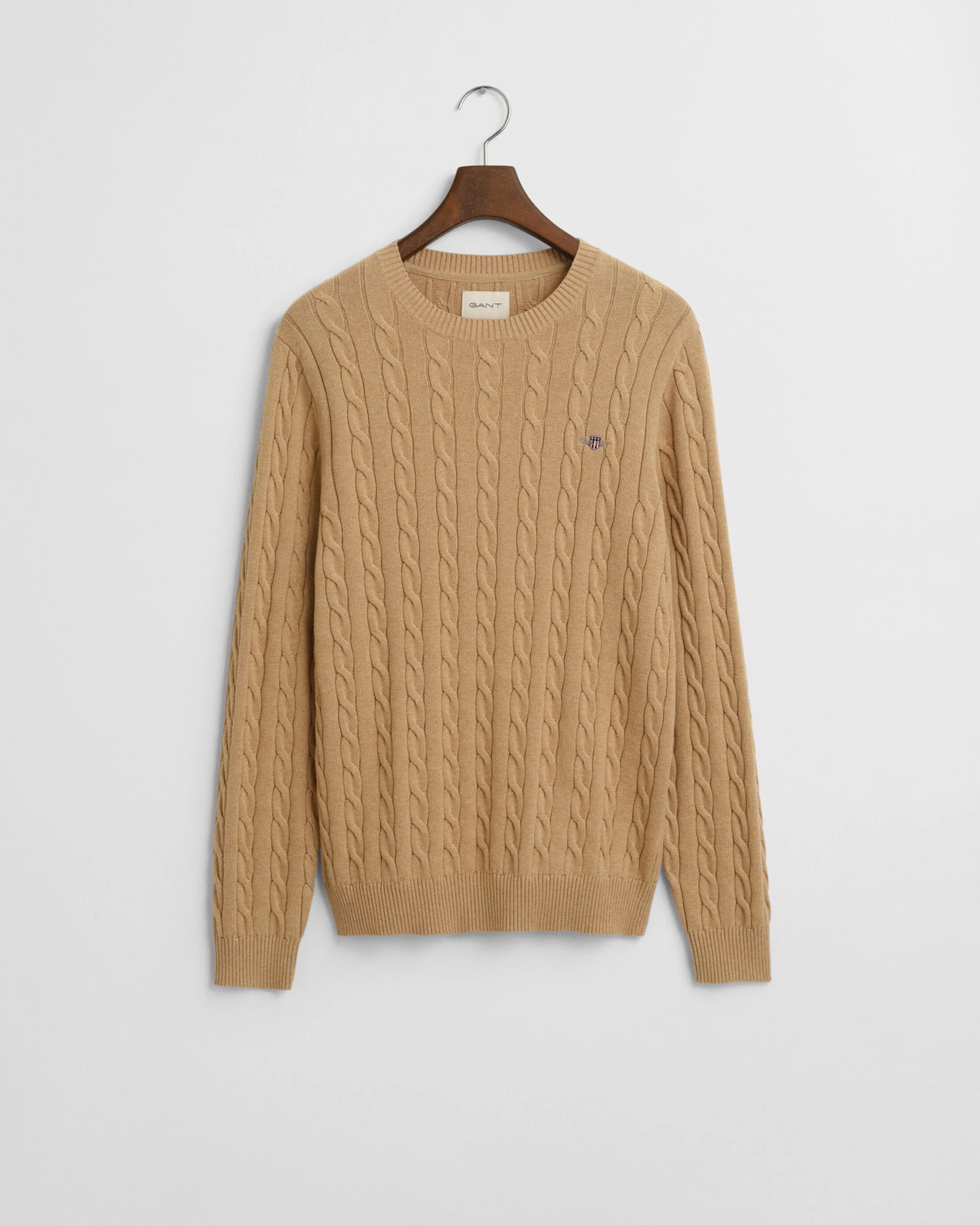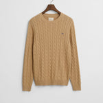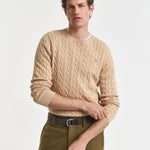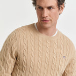 Camisola Gant em malha entrançada de algodão com decote redondo