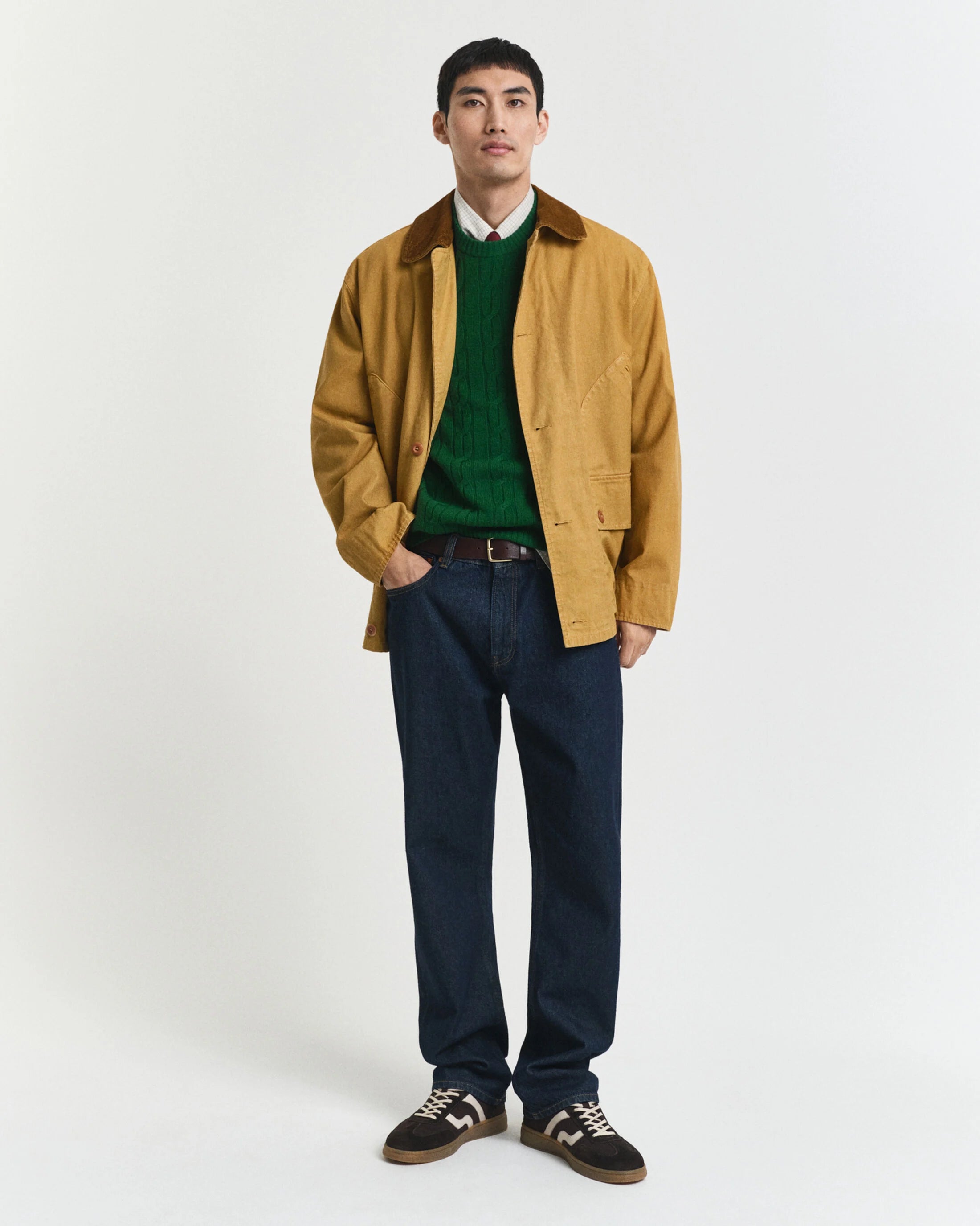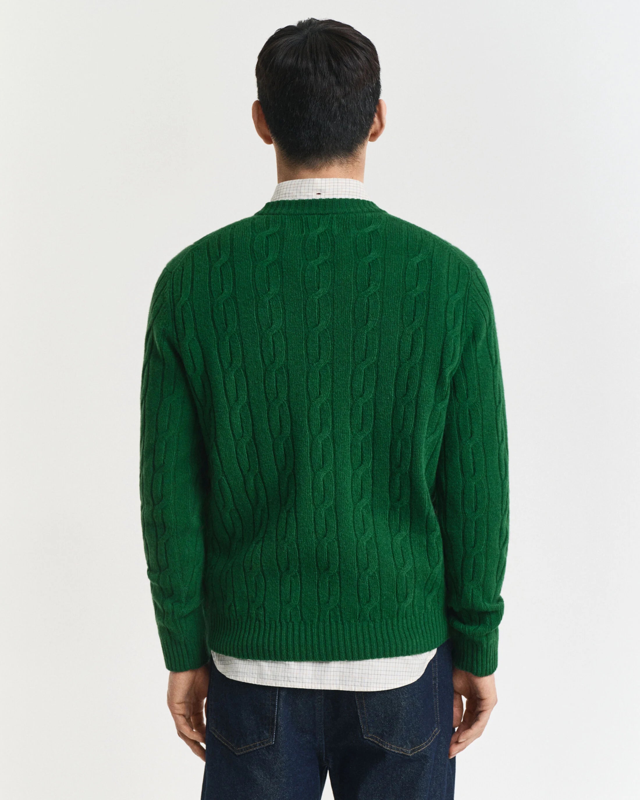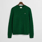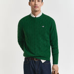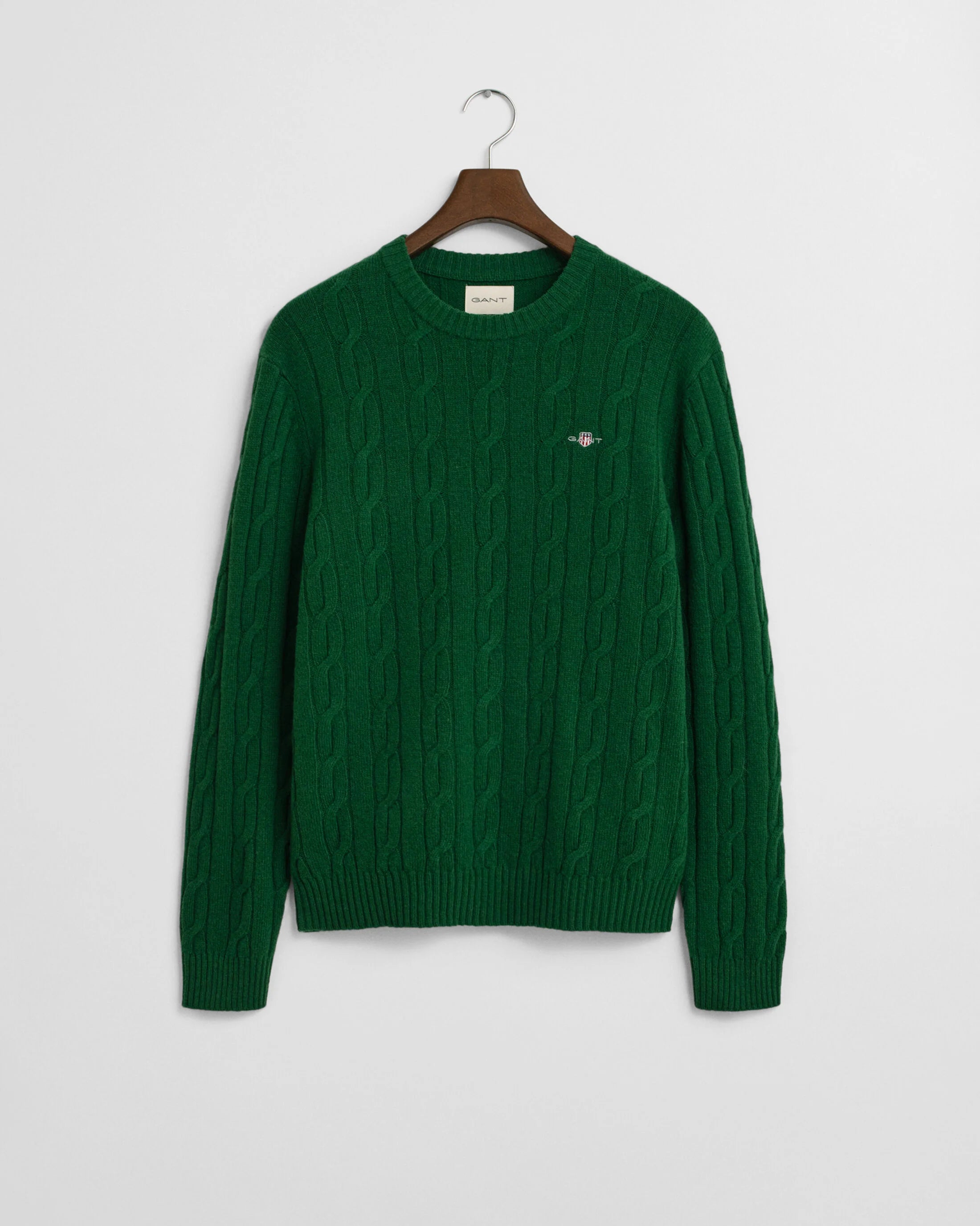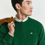 Uma camisola de malha entrançada colegial feita com fios de lã suave e brilhante, que é perfeita para os meses mais frios. Com um corte normal, esta camisola de malha apresenta um decote redondo clássico, detalhes canelados na bainha e punhos e o nosso icónico emblema GANT bordado no peito.
