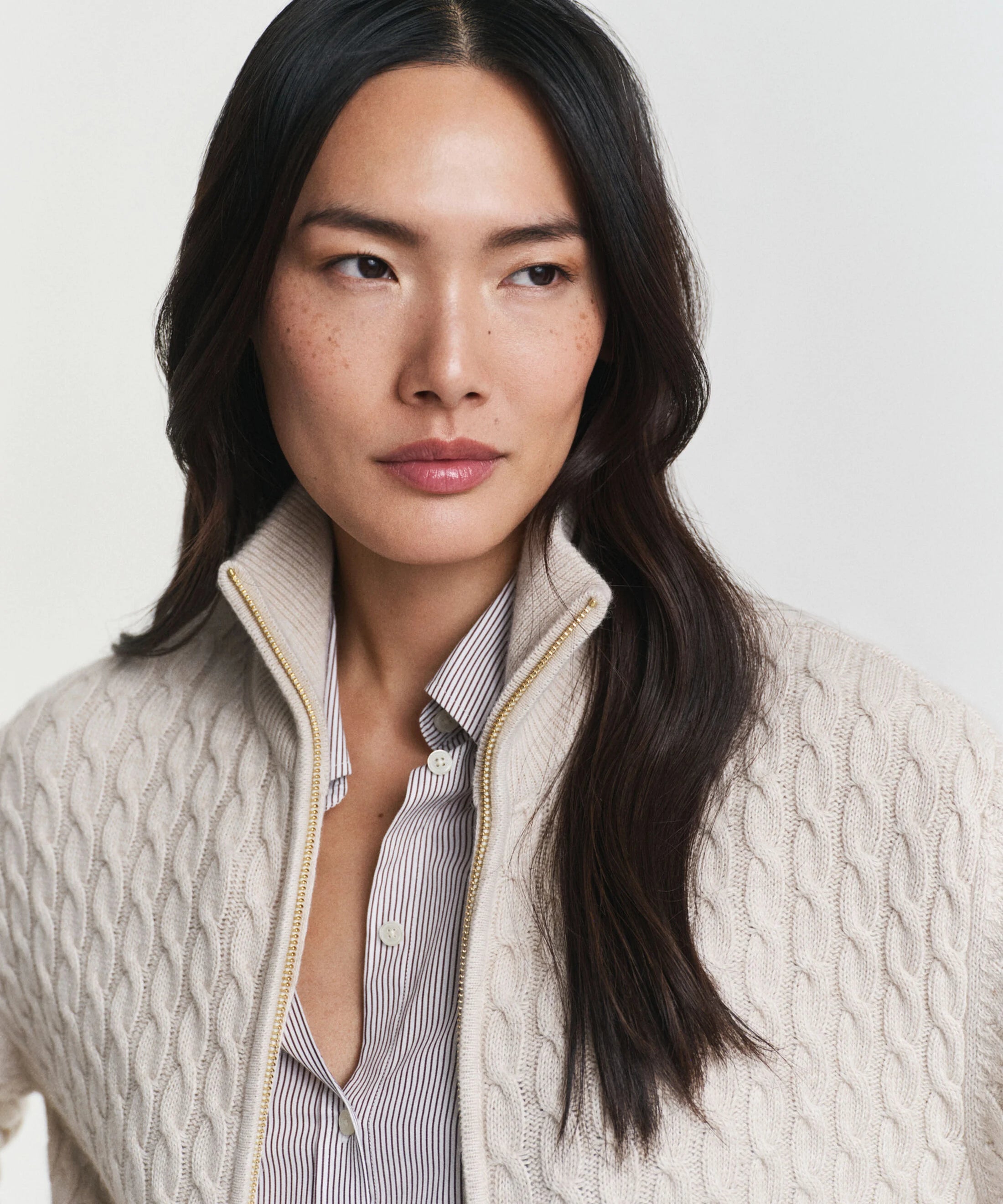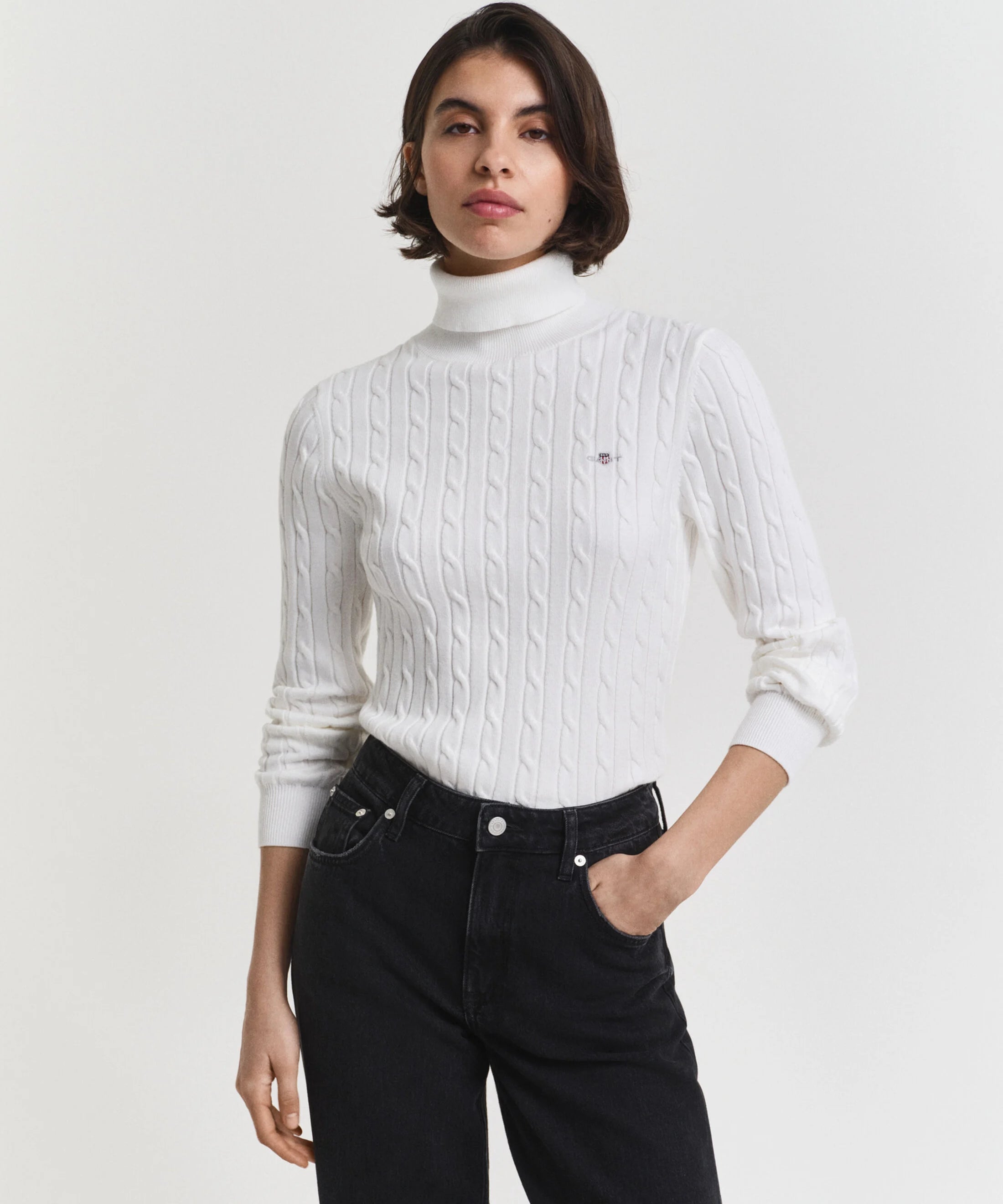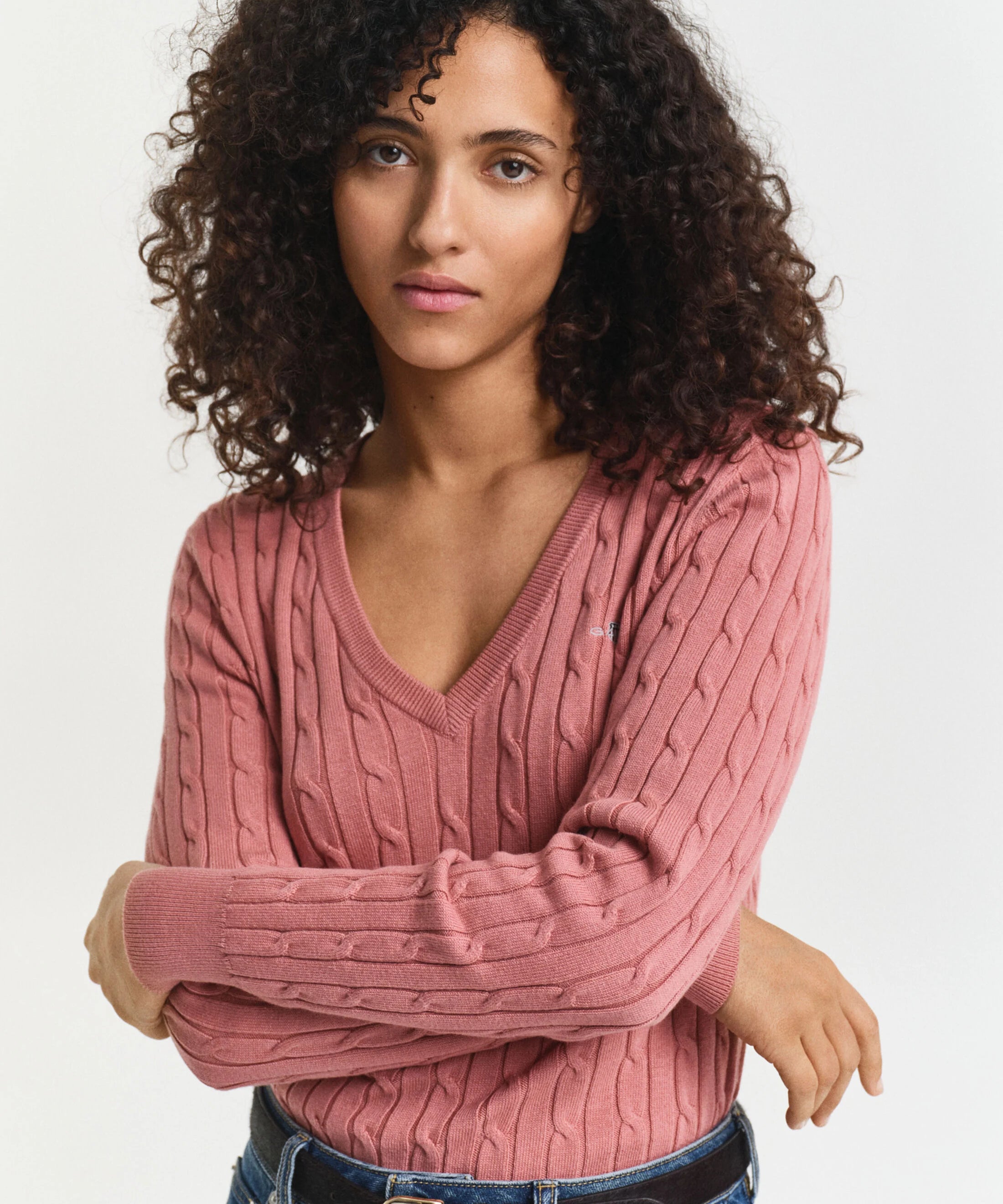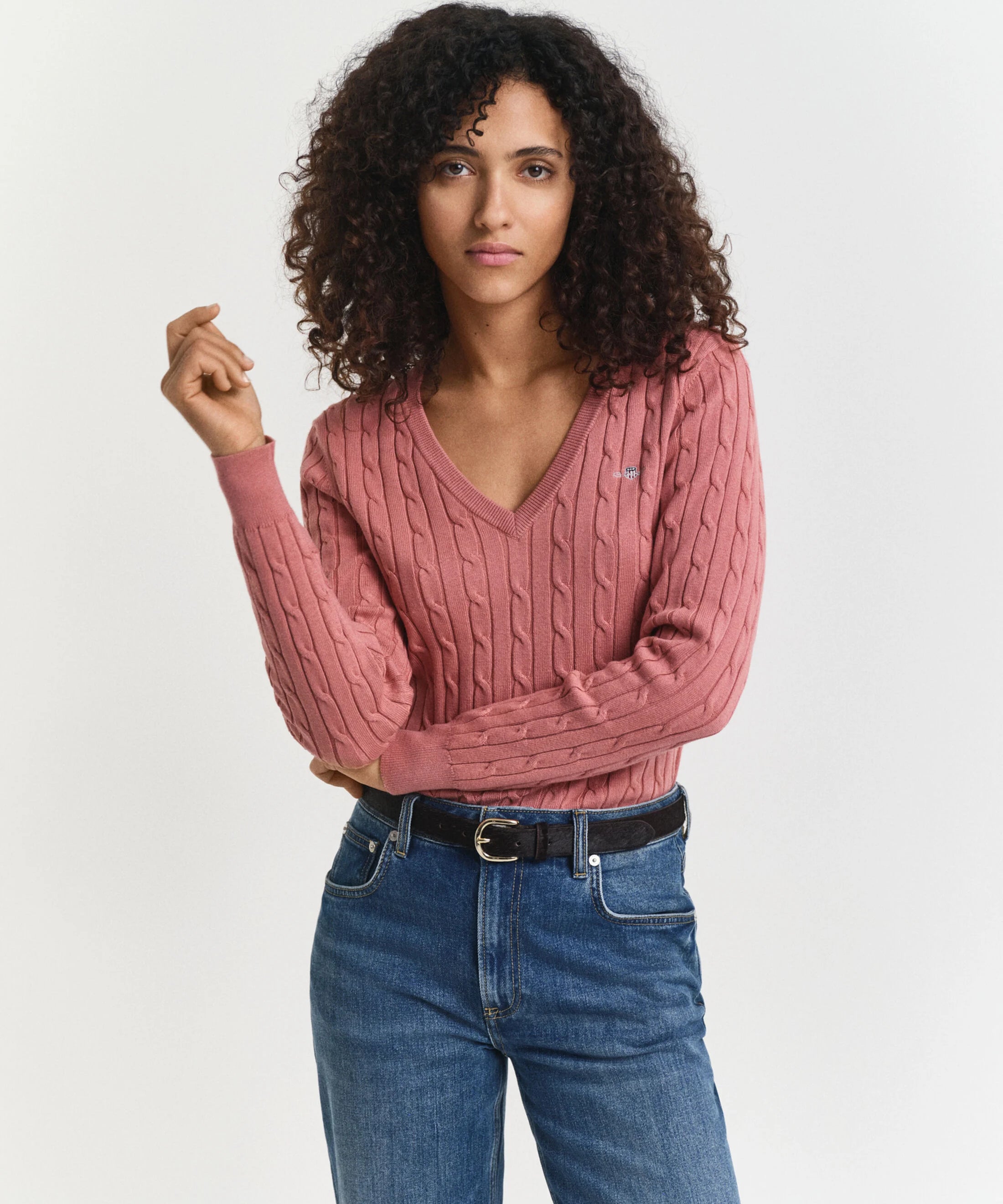 Camisola Gant de malha entrançada com decote em V em algodão com elastano