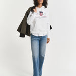 Com um grafismo com escudo inspirado nos nossos arquivos dos anos 80 e um encanto retro, esta sweatshirt com capuz combina o nosso legado colegial com o streetwear contemporâneo. Criada numa mistura de algodão suave com um interior escovado, esta sweatshirt com capuz é perfeita para usar durante todo o ano. Possui detalhes canelados, um capuz com cordão e um bolso sobrecosido à frente. Esta peça foi concebida com um corte descontraído. Para um corte mais justo, opte por um tamanho mais pequeno.