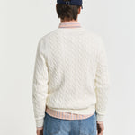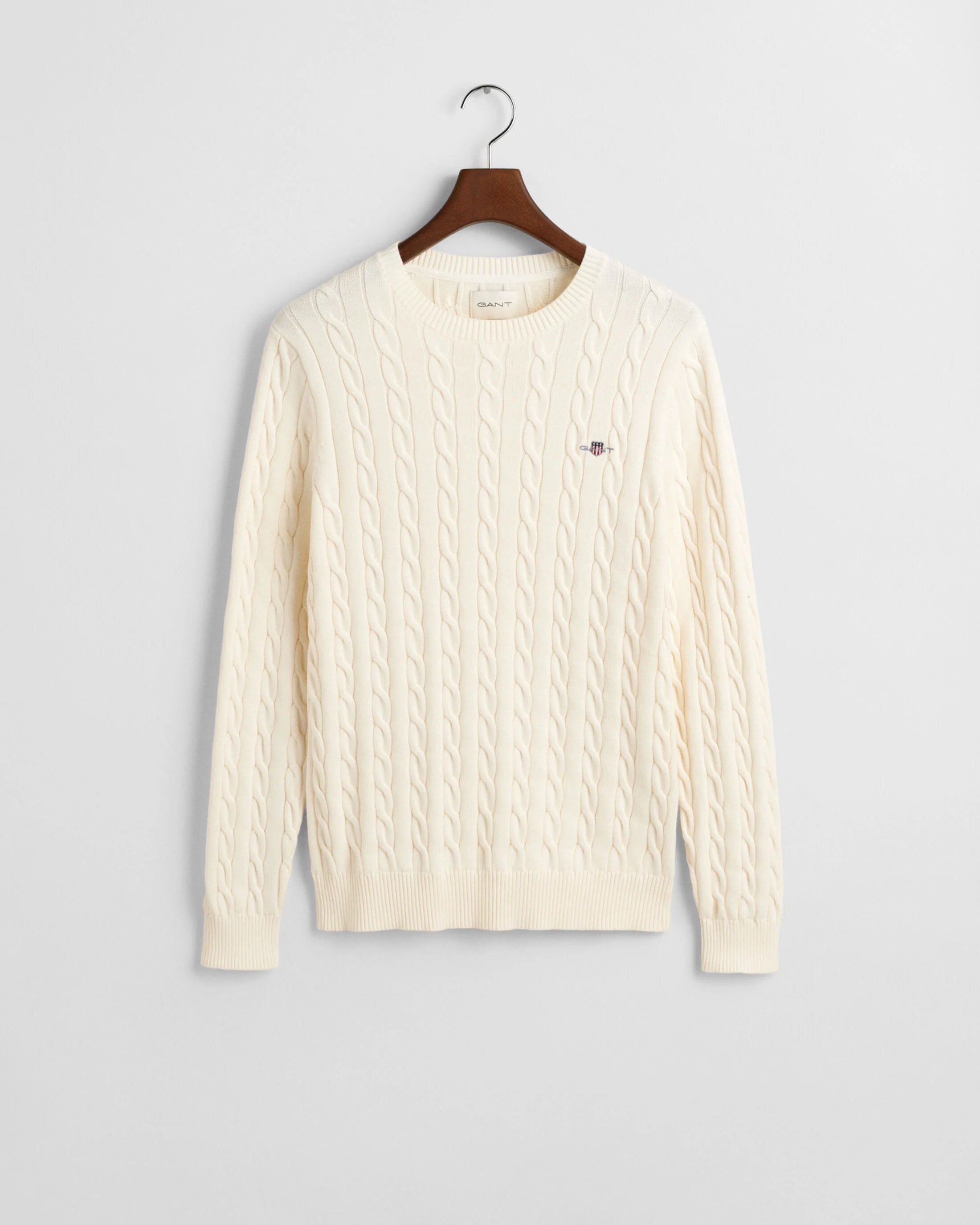Concebida com uma estrutura em malha de algodão entrançada por toda a peça, esta camisola de malha suave apresenta um corte normal e um decote redondo clássico. Uma peça colegial essencial, está decorada com o nosso icónico emblema GANT Archive bordado no peito e rebordos canelados no decote, bainha e punhos.
