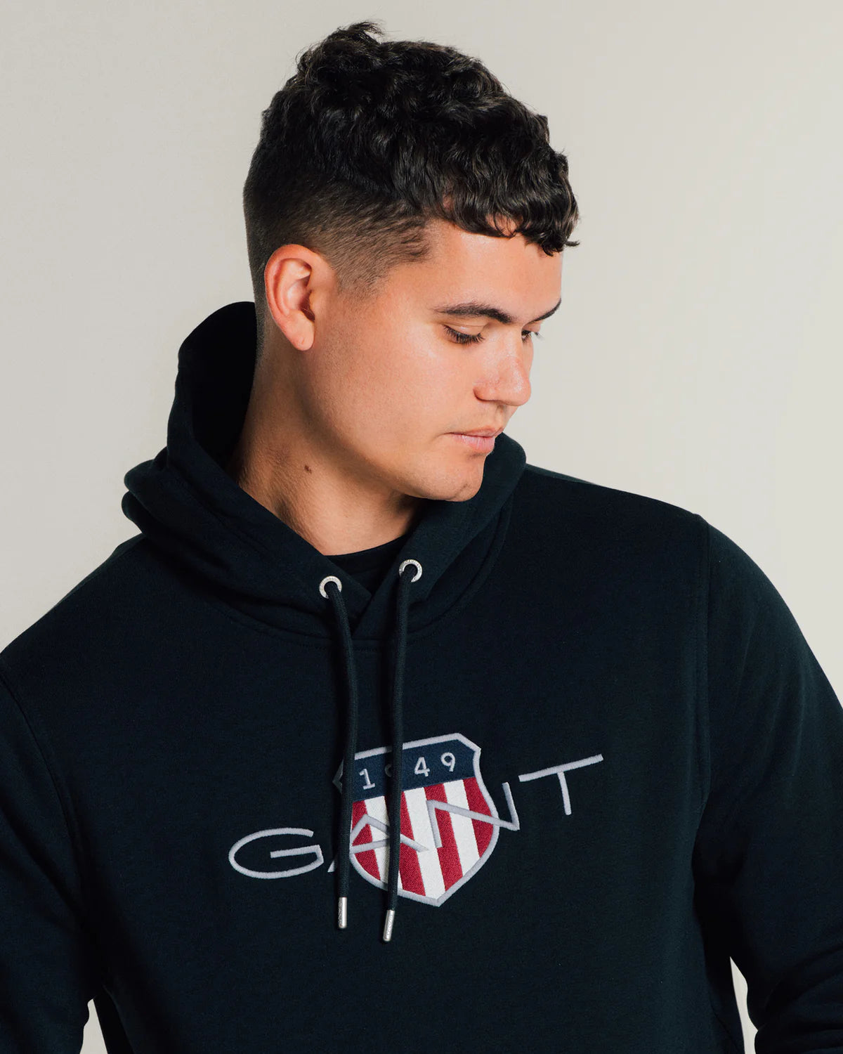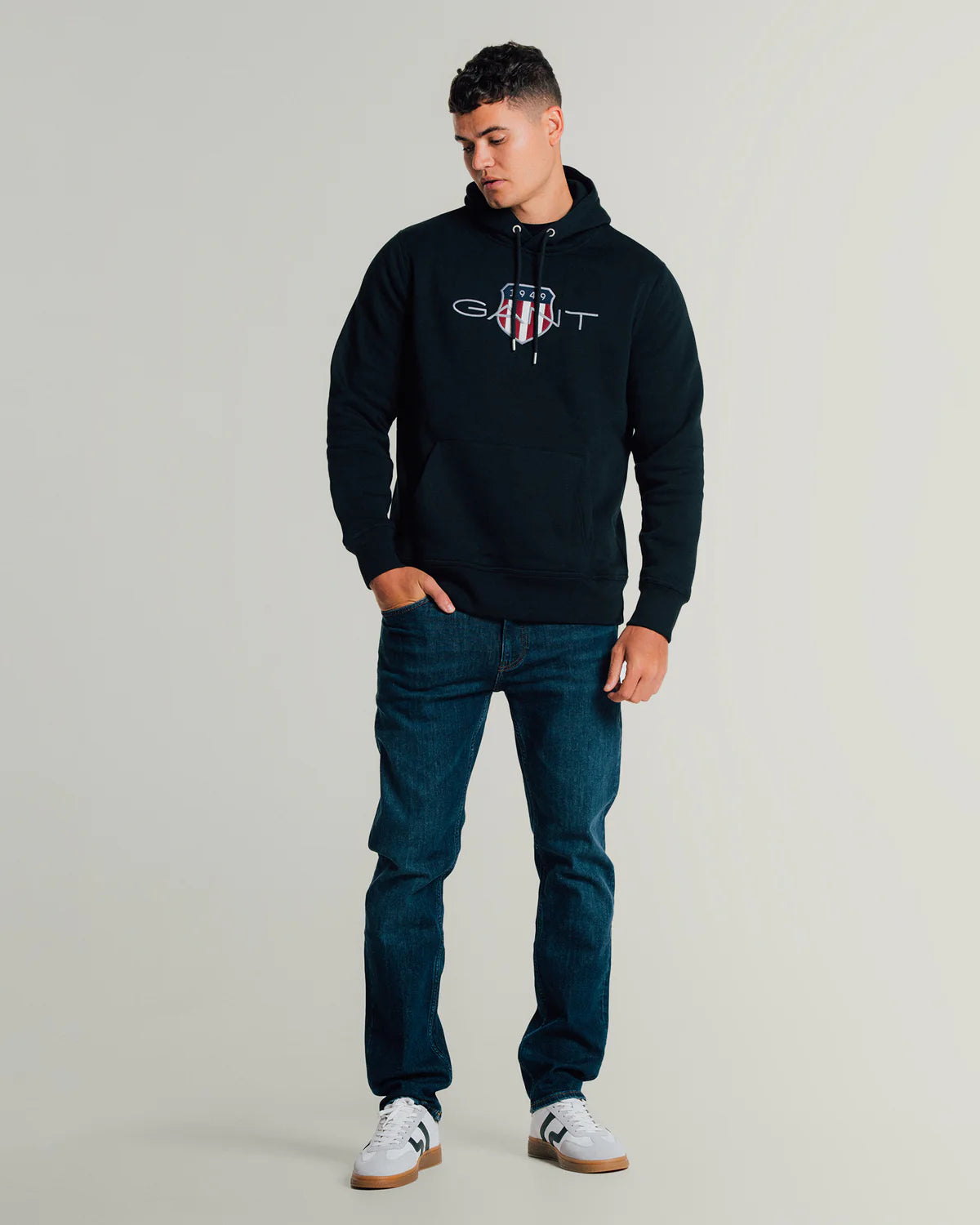 Com um grafismo com escudo inspirado nos nossos arquivos dos anos 80 e um encanto rétro, esta sweatshirt com capuz apresenta um corte normal e um visual mais descontraído.